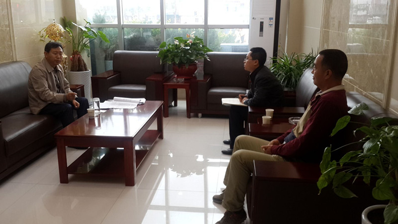 圖為公司副總經(jīng)理柳振源與試用期滿工作人員進(jìn)行考核談話