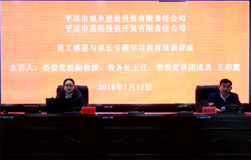 1月11日上午,惠民公司舉辦員工“感恩與成長”專題學(xué)習(xí)教育培訓(xùn)講座,本次培訓(xùn)特邀中共平?jīng)鍪形h校副教授、教務(wù)處主任、市委宣講團成員王彩霞教授主講。公司副總經(jīng)理魏顯文、馬新平出席培訓(xùn)講座,副總經(jīng)理柳振源主持培訓(xùn)講座,公司中層以上管理干部及員工140余人參加培訓(xùn)。