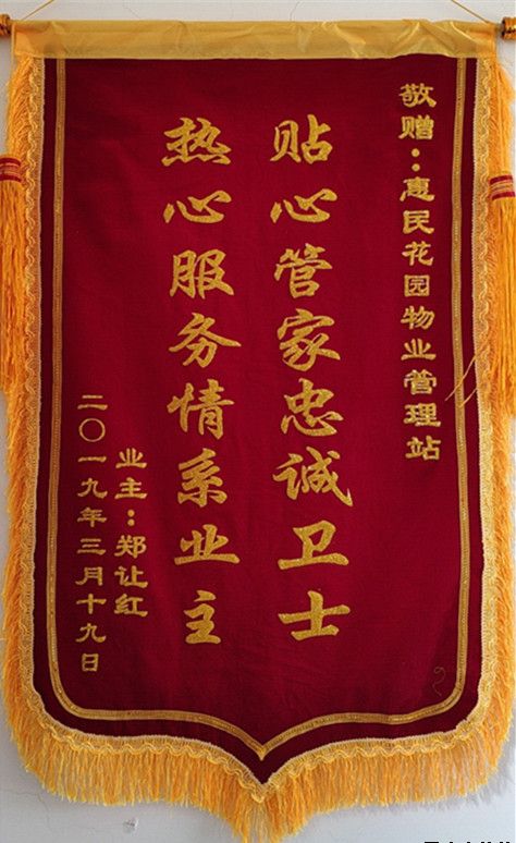 收到錦旗是業(yè)主對物業(yè)工作的極大肯定,也意味著以后的工作更多了一份責任,物業(yè)將繼續(xù)全心全意為業(yè)主服務(wù),為業(yè)主當好管家,為幸福小區(qū)而努力!