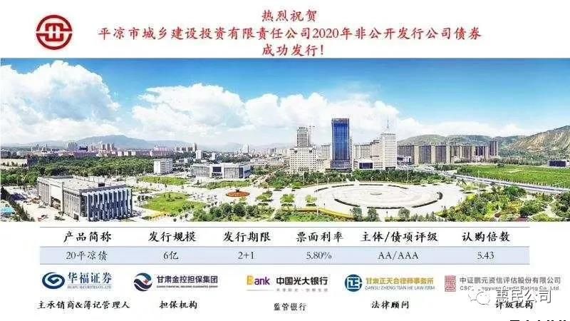 3月12日,平?jīng)鍪谐青l(xiāng)建設(shè)投資有限責任公司由華福證券承銷的6億元“20平?jīng)鰝背晒Πl(fā)行,發(fā)行利率5.80%?;I備近一年的債券發(fā)行工作終于塵埃落定,捷報傳來,公司上下無不精神振奮,信心倍增!