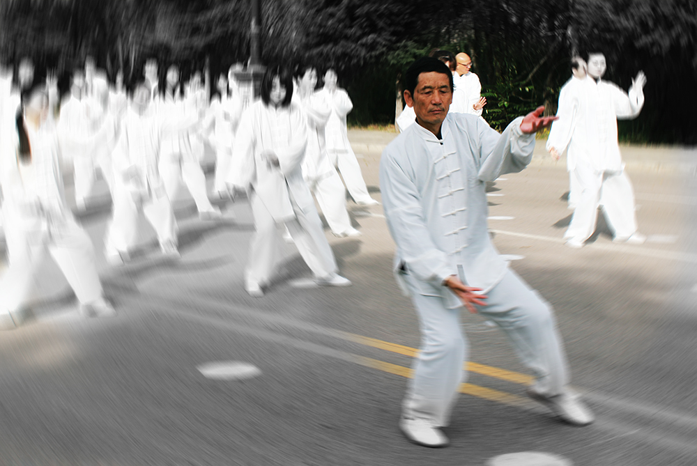 展演中,隨著舒緩的崆峒太極拳28式音樂,50多名參演人員身著白色太極拳服裝組成方隊(duì),太極愛好者們由靜而動(dòng),表演動(dòng)作整齊一致,一招一式,剛?cè)嵯酀?jì),整個(gè)展演現(xiàn)場(chǎng)氣勢(shì)恢弘。