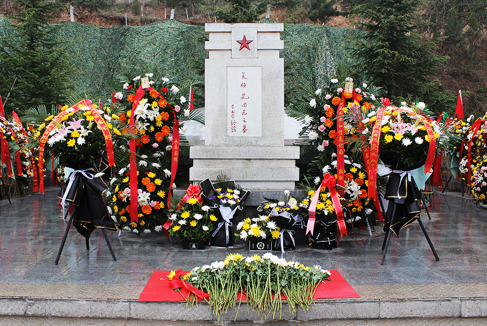 向吳煥先革命烈士敬獻(xiàn)花籃并整理緞帶