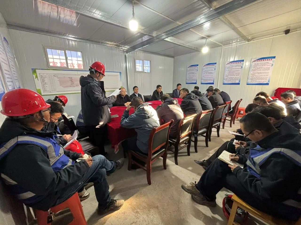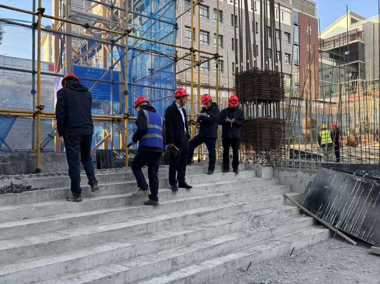 11月10日,集團公司在平?jīng)鏊闹惺┕ろ椖坎拷M織召開工程質(zhì)量自查提升現(xiàn)場會。會議以平?jīng)鏊闹卸喙δ芙淌沂┕がF(xiàn)場為例,圍繞規(guī)范施工、腳手架搭設、臨邊防護、模板支撐、揚塵治理和安全文明施工等方面進行現(xiàn)場提問,并就加強施工過程中容易忽視的質(zhì)量和安全隱患管控措施進行探討交流。